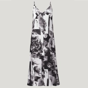 From Copenhagen-based Baum und Pferdgarten, the Abiella dress (€229) features a collage pattern of black and white digital prints. The midi-length dress features adjustable spaghetti straps, and has been constructed with a blend of viscose and polymaide. Thanks to Baum und Pferdgarten‘s commitment to transparency, the exact name and location of the facility where this garment was made is also listed, and the brand states that all their partners are dedicated to respecting workers’ rights.