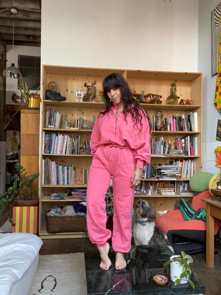 It’s that sense of bold confidence that Rosen evoked for the Joan Set, a glam-rock jean and jacket collection named in honor of Rosen’s friend and touring musician Joan Wasser aka Joan as Police Woman. Comprised of three different matching sets (sold separately), the line is full of drama, patchwork, flared silhouettes and Ziggy Stardust-inspired style, all of which lend the garments character. “It was an evolution of a version I did where there was just one zipper,” Rosen explains. “I wanted to throw some exposed zippers on it, make it a little flashier. Right now especially, I want to feel more dressed up every day because we’ve been stuck inside for so long. After all this, I want to feel like I’m peacocking a little bit more.”