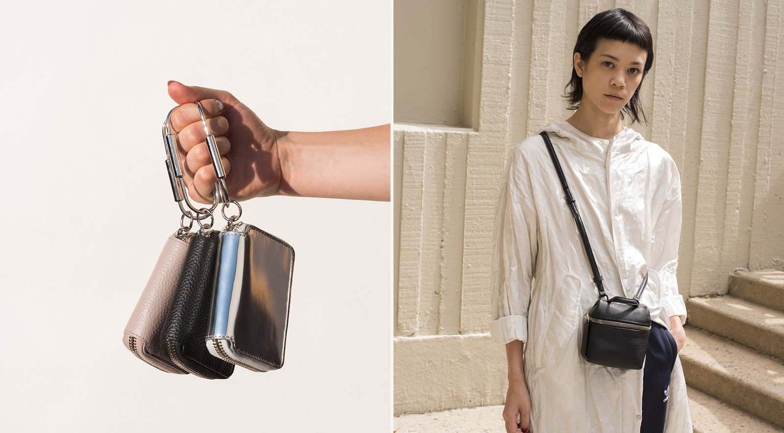 For sporting no brand name or logo whatsoever, KARA backpacks are incredibly easy to spot in the wild—the thick, luxurious pebble grained leather, a single Riri zipper, the tiny square shape. It’s this brazenly minimalist look that’s launched the independent NYC brand into cult-dom. With the small backpack starting at $450, however, it’s a decidedly big investment. Thankfully, designer Sarah Law has now miniaturized their essence into a new small leather goods collection (at slightly more amenable prices) that includes wallets, pouches, clutches and keychains—and don’t forget the micro satchels.