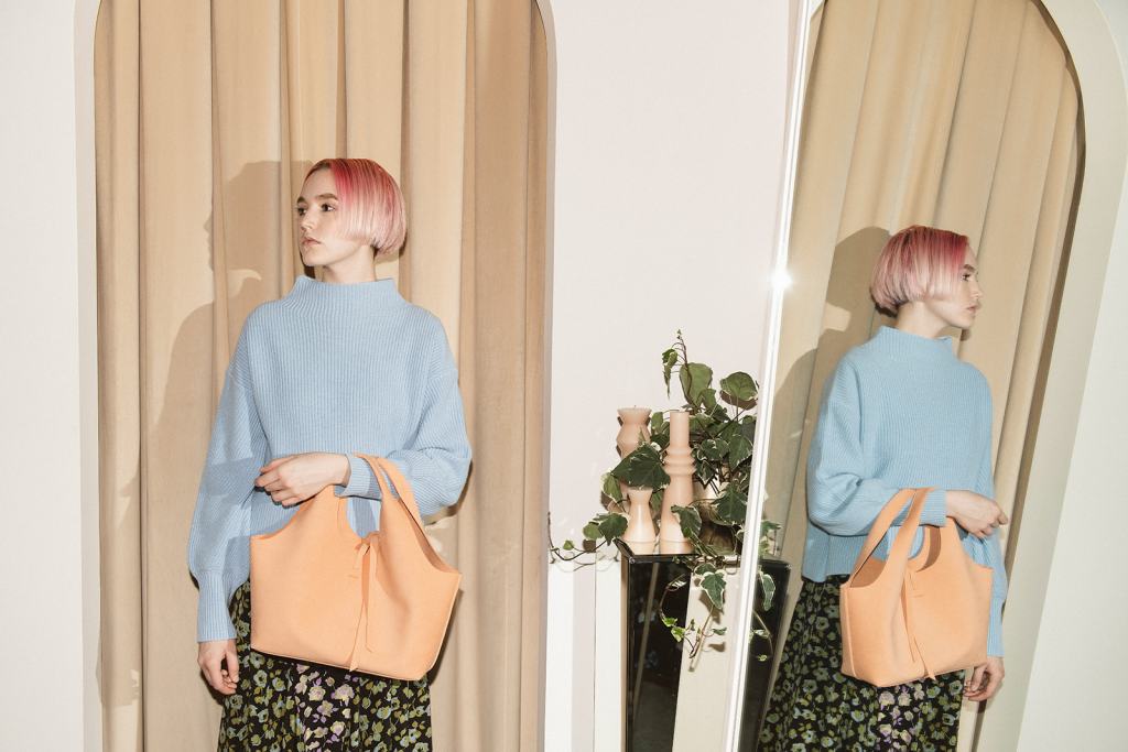 With all of these ethical decisions guiding the brand, Kwon admits that the design process that follows is quite personal. “I sketch what I would want in a handbag from an aesthetic and functional standpoint and then I quickly jump into pattern-making and make the samples myself,” she explains. “I personally love a handbag that isn’t too structured and has a bit of a natural drape which I think works well, visually speaking, on a sustainable and Earth-conscious bag. I value the hand and silhouette when it comes to design, so it usually takes several samples before I get it right.”