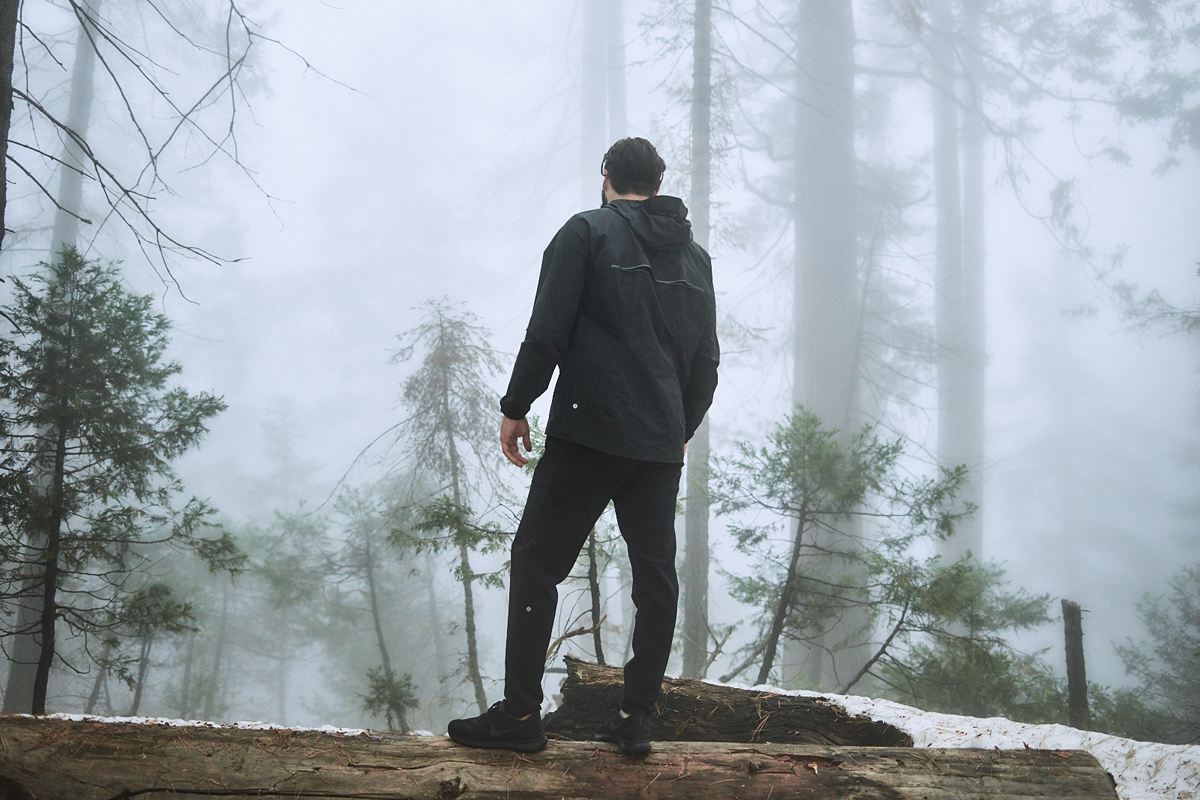 The unpredictable nature of his work makes Serfoss the perfect person to put lululemon’s new men’s outerwear pieces, each designed for an active lifestyle, to the test while hiking around California’s Sequoia National Park. “I chose the environment for this shoot as an uncomfortable and challenging one: cold, damp, at elevation, yet rewarding in its mysterious natural beauty,” he explains.