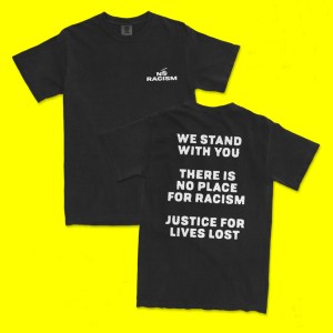 This We Stand With You T-shirt ($20) from No Sleep Records reads loud and clear: “No Racism,” it states on the front and “We Stand With You / There Is No Place For Racism / Justice For Lives Lost” on the back. 100% of the proceeds from the black and white shirt get divided between the official George Floyd GoFundMe, Black Visions Collective, Reclaim the Block, the Bail Project, and Facing History.