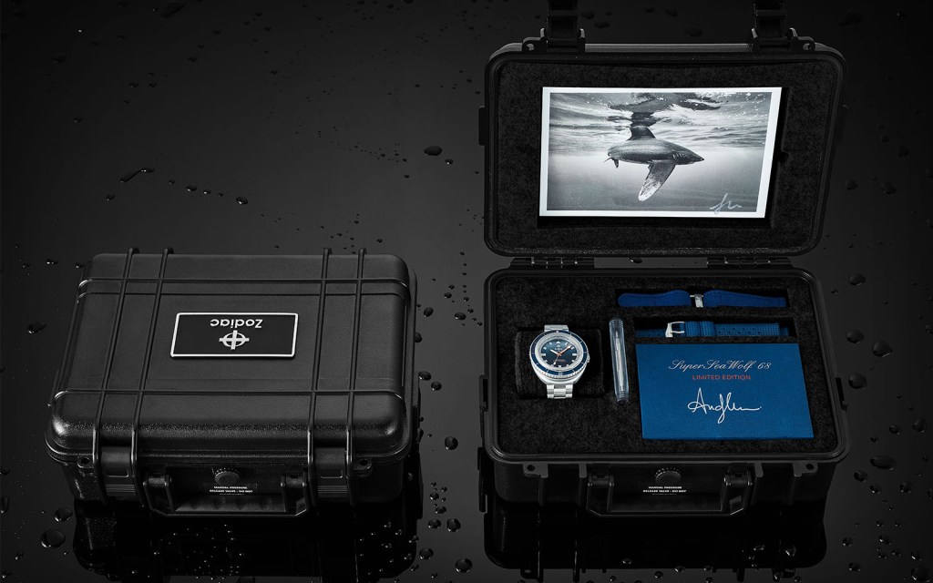 “Sea Legacy was co-founded in 2014 by esteemed photographers Paul Nicklen and Cristina Mittermeier and we decided to use our collective influence to create a platform where we could share our mission about creating meaningful change to protect the ocean and its species,” Mann tells us. “SeaLegacy’s mission is to inspire immediate ocean conservation actions through powerful, visual storytelling. When I first met with Zodiac, one of the oldest and established dive watch companies, it was clear both parties wanted to do the work; right away Zodiac has dedicated their next steps to joining SeaLegacy in this mission. I’m proud to announce that Zodiac is co-funding our 2019 expedition to East Timor’s coral reefs where we will photograph, video and study the endangered species there.” It’s fitting that Zodiac launches this news alongside this iteration of the Super Sea Wolf 68 Saturation, which includes design nods to Mann’s conservation work.