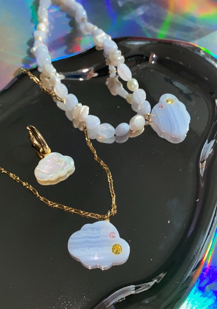 When it comes to production, the majority of Notte’s jewelry—and all of the beaded pieces—are hand-made in the brand’s New Jersey-based studio. For glassmaking or casting, Tse looks to small, independent crafters on Etsy in order to support other small businesses while offering new projects. As many of the materials are natural, limited in inventory and finished with hand-crafted elements, Notte rarely produces the exact same pieces, further endowing finer aspects to their whimsical line.