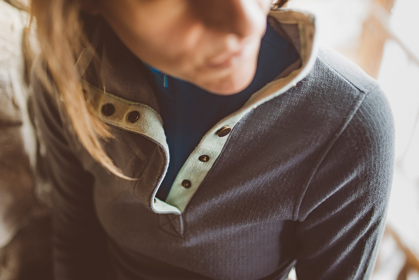 Up-and-coming women’s outdoor apparel brand Wild Rye is the brainchild of two avid outdoors women, Katy Hover-Smoot and Cassie Abel. Their technical products feature aesthetic-driven designs and unique colorways. The Lora sweater is mid-weight, making it a versatile layering piece. This sweater is crafted from a 89% merino and 11% poly-blend jacquard, and has an asymmetrical snap button collar. Breathable but warm, it’s ideal for high-output activities, yet looks sophisticated enough for après.