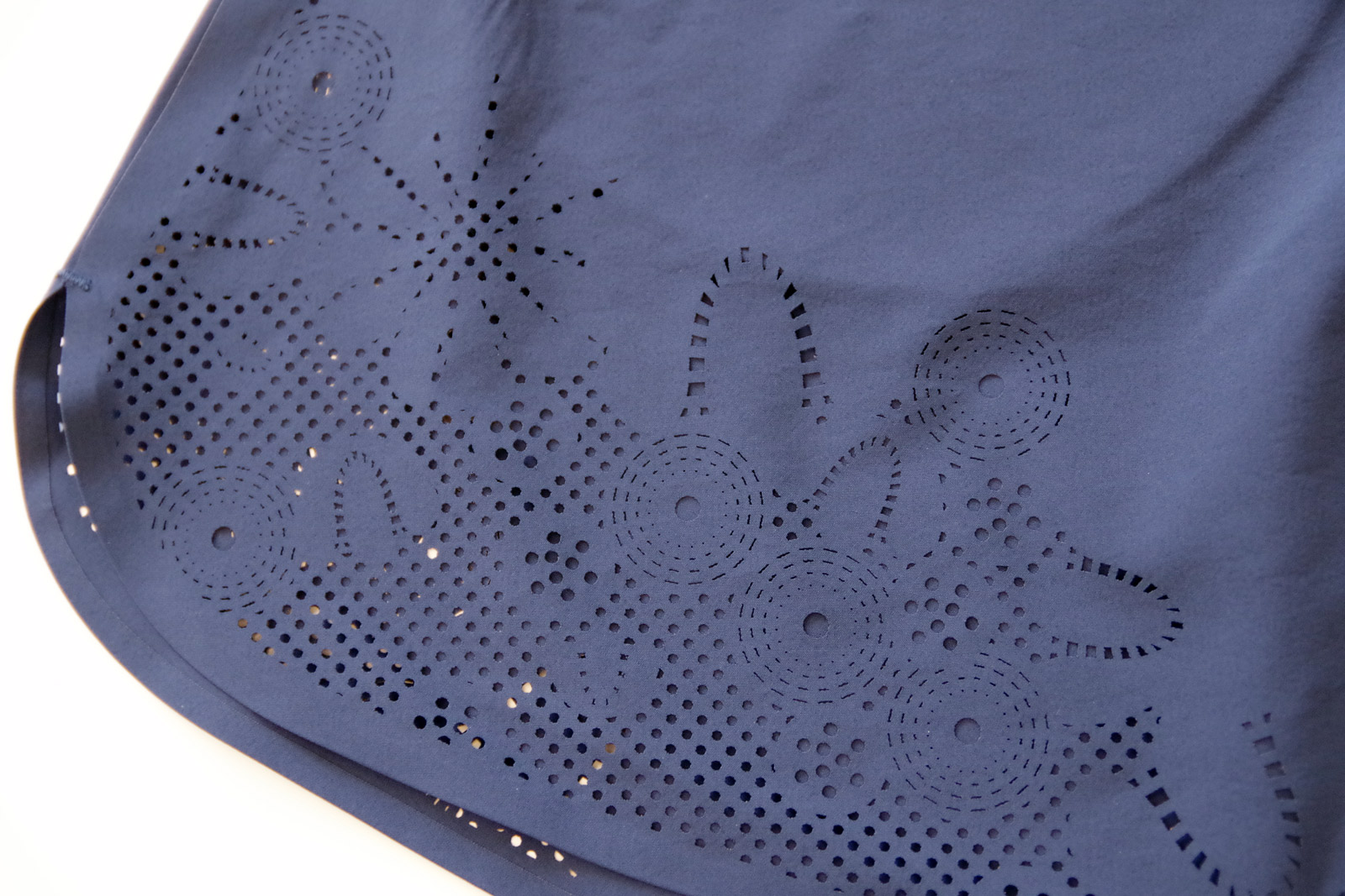 As for the men’s collection, the stretch jacket is a true standout, and composed of nylon and spandex for a four way stretch. The durable texture reveals water-repellent coating. It’s a bit dressy and a bit sporty. Altogether, these are not basic basics. Eng herself says that much of the inspiration was drawn from natural phenomena—from the mathematically derived to bioluminscent mushrooms and even crystal cenotes.