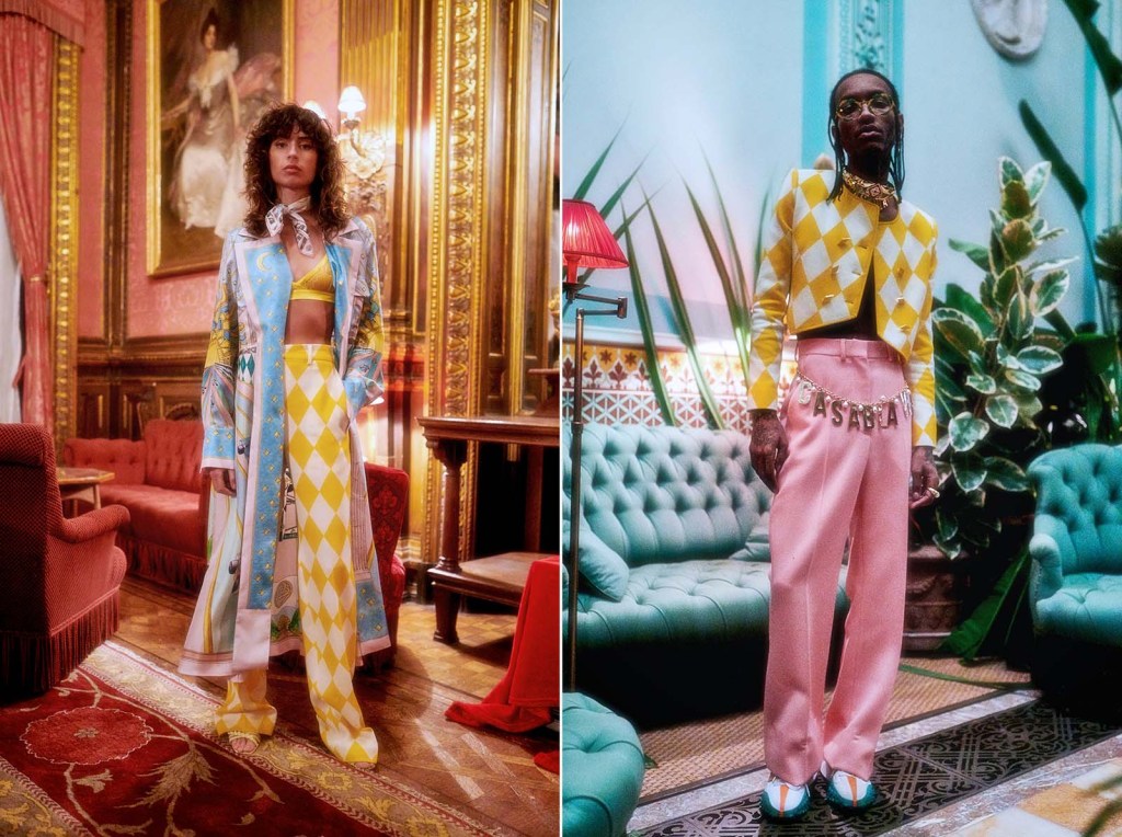 From Charaf Tajer’s Casablanca, the “Grand Prix” collection encapsulates all the glitz and glam of Monaco, with plenty of casino references. Quilted coats contrast silky blouses, but all thematically link up through delightfully gaudy prints and almost-kitsch silhouettes.