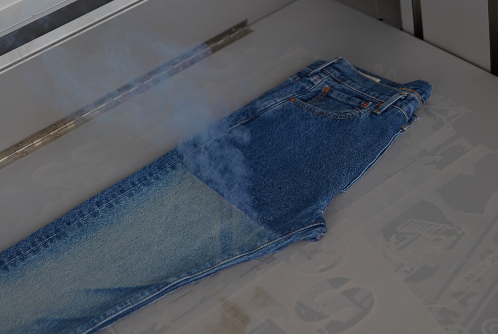 Bart Sights, VP of technical innovation at Levi’s Eureka Lab, explains that this process started as a manufacturing tool. “We have used lasers for 15 years, but always augmented by manual applications like hand-sanding, sandblast, spraying chemicals, razor blades, thermo tools… caveman-ish activities all in the name of creating these authentic finishes that there is such a demand for,” he says.