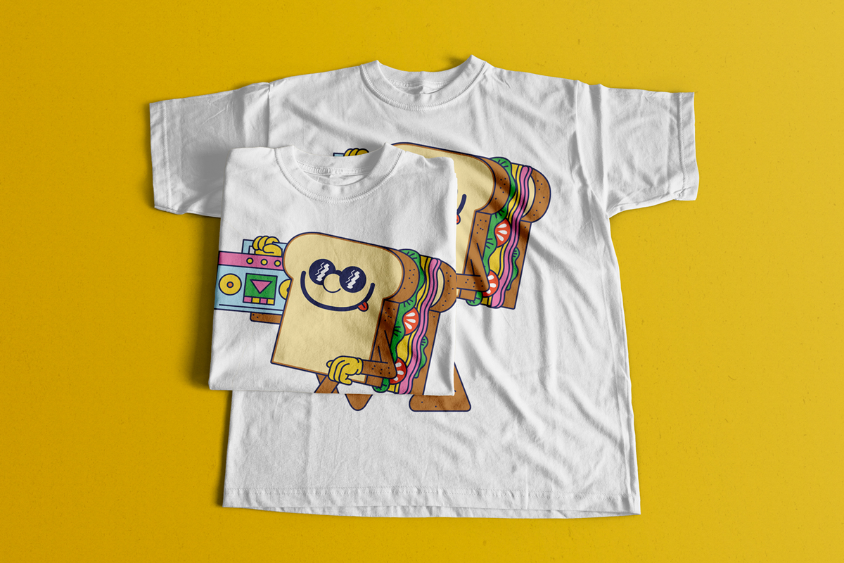 The idea came about because of various things all happening simultaneously. I’ve just started a new sandwich venture with a friend at The Social in London and in the creation of the brand, we commissioned illustrator Rob Flowers to create some happy sandwich characters. A few T-shirt printing companies have recently set up crowdfunding / pre-buy T-shirt projects whereby people can submit designs, create a campaign and if enough people buy their designs, then the garments get printed and ship—with no upfront cost to the person wanting to get their design on a T-shirt. I’ve been wondering how to tie in what we’re doing to a charity I really believe in—and the idea of our happy sandwich dude having the power to raise money for a good cause seemed like a good one.