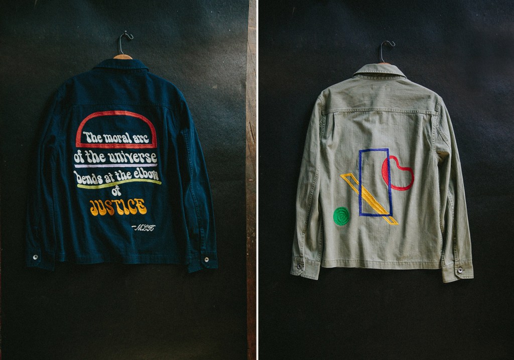 Each piece in the collection has been beautifully and expertly crafted by some of the brand’s favorite chain stitch embroidery artists across the country—Psychic Stitch Embroidery, Stitch Witch, Ceremony Chainstitch, Crooked 8 and Stay Chill Bill—with every design imbued with its creator’s style. Whether abstract or featuring a quote from Dr King, each one makes a bold statement.