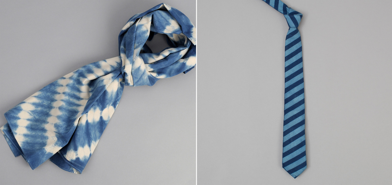Selvedge Chambray shirts, scarves and ties hand-dyed in Japan