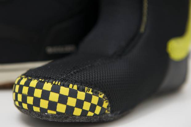 Sharing low-profile appeal with the Sk8-Hi, the Holden snowboard boot sports a slim sole for more board feel and a skate-style silhouette. The boot features premium leather and the same 59% recycled nylon found in Holden’s outerwear line. Inside the Quadfit x Thermal liner, you’ll find a gel toe box—branded with iconic Vans checkers—for heavy impacts and additional pressure cuff ankle padding to help prevent foot fatigue. All of this along with a soft, traditional lace-up boot and an old-school look make the boot perfect for lapping the park and all-mountain cruising.