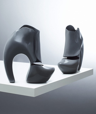 Also a graduate of AAAD, Pavla Podsednkov designed her futuristic collection of women’s shoes as her final student project. Called Instant Shoe, the collection explores the possibility of 3D-printing shoes in custom sizes from digital scans of feet. The concept is based on individual production of specific sizes along with the customization of shoe forms. Made possible by 3D printing, ABS vacuum shaping and carbon fiber, Podsednkov is able to produce perfectly tailored footwear from a library of designs.