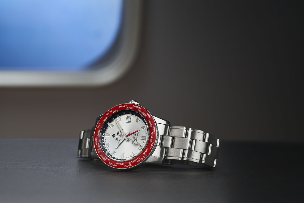 “There is something deeply nostalgic about vintage watches and the art of traveling,” Ryan White, Zodiac’s creative director, tells us. “When we decided to pull this design from the archives, we wanted to pay homage to the Zodiac designs, and also to the way people traveled when the watch originally launched in 1970. In the ’70s, to travel by plane was truly a luxury—from the way people dressed, sipped cocktails and mingled with other ‘worldly’ passengers if they were lucky enough to visit international destinations.”