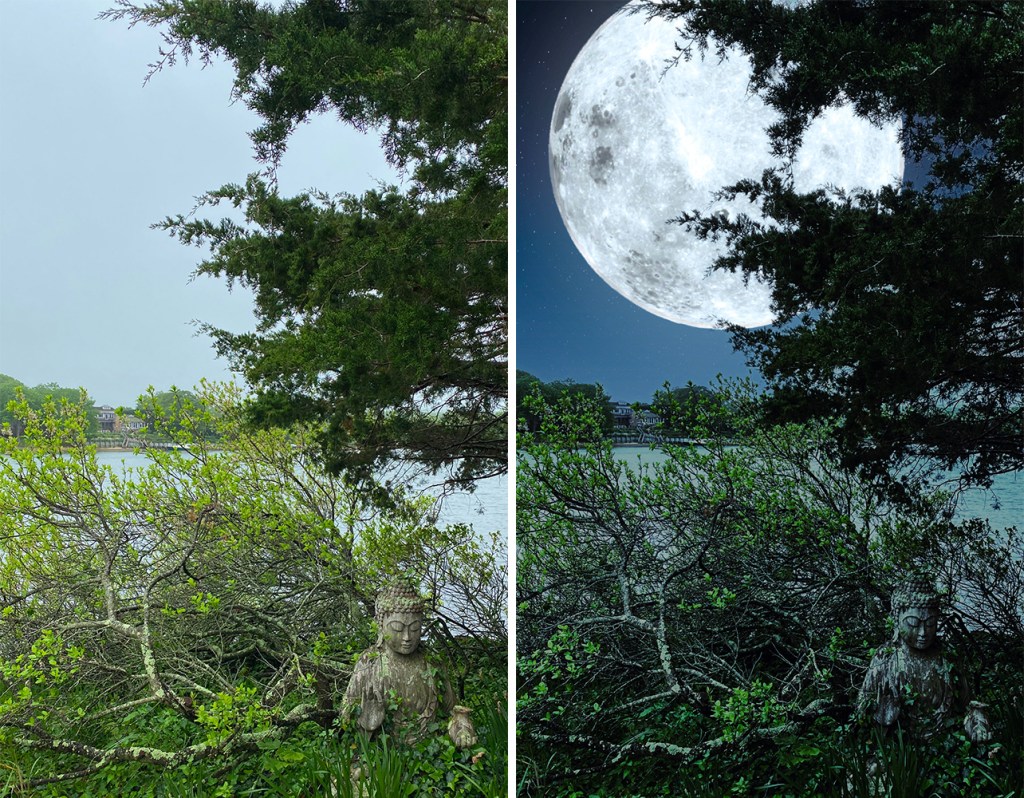 The app proves perfect for anyone making quick yet sizable edits to photos for social media. Within the app you’re able to save to your camera roll or upload directly to a bevy of platforms. Unlike Instagram’s Story filters (many of which rely on AR), the Photoshop Camera App offers flexibility and customization. If a blue sky you added through a filter looks unnatural, it can be toyed with until it fits. And the masks Sensei makes to separate foreground from background are impressively detailed as shown above—the tree branches and leaves remain perfectly intact when a new sky and moon is popped in to the background. We do hope that the Sensei technology improves enough to reflect that altered sky in bodies of water and other similar cases.