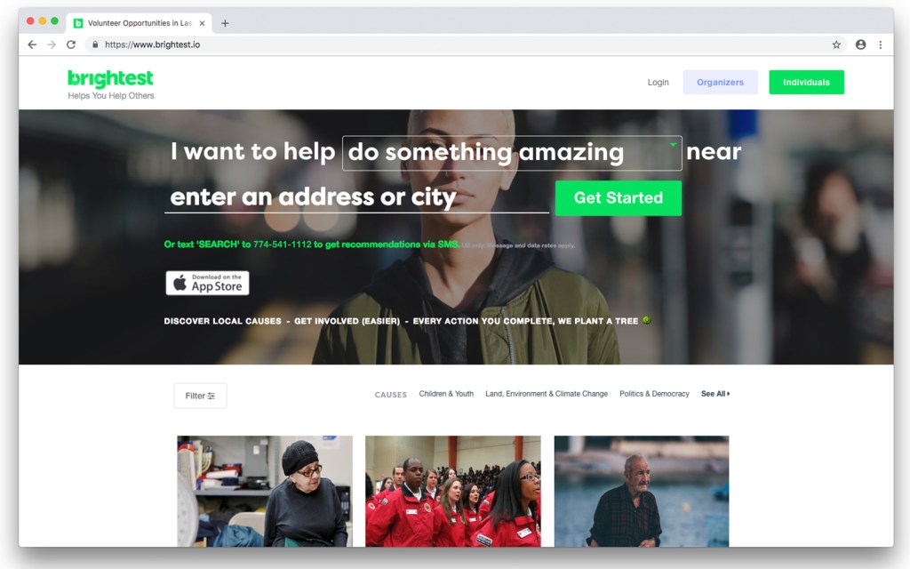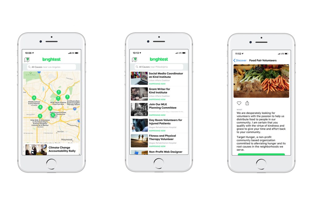 Lending some time to organizations, causes and people who need it is an invaluable way to make a difference. Launching today, Brightest is an iOS app that brings volunteer options directly to those looking to help out. By recommending opportunities in your area (much like other apps recommend songs or restaurants) Brightest hopes to increase the number of people who lend their time, skills and resources to important causes. Plus, the company will plant a tree (through a partnership with reforestation programs in California, Peru and Tanzania) in exchange for every action taken, as a part of their one-for-one model.