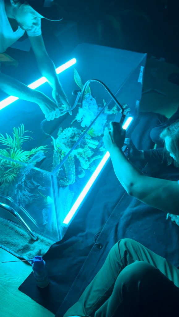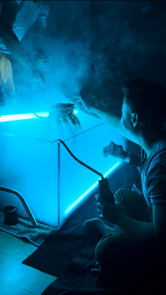 Ma and his team worked with fishmonger Steven Wong of Aqua Best NYC to source the crabs, and built the set within a 70-gallon aquarium. “I love building worlds on camera and taking something familiar and turning its perception around for audiences,” Ma says. “This project was particularly interesting to me because it combined miniature set design, puppeteering, practical effects and dynamic camera work. In trying to achieve so much in-camera without the use of CGI, it was an ambitious undertaking that relied less on expensive camera rigs and more on ingenuity and creative problem-solving.”