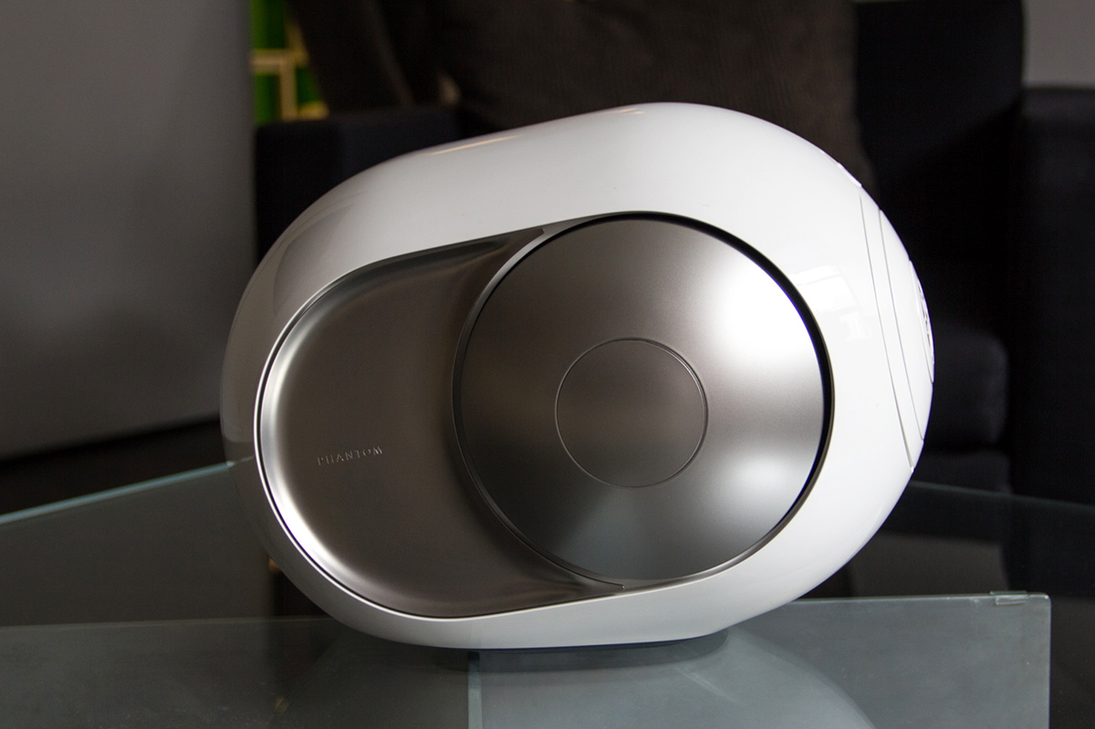 We previewed the Phantom in our office here in NYC, and the heavy device (weighing about 11 kg) was placed gently upon the glass table in our library. Imagine our surprise when Moderat’s track “A New Error” (Devialet’s go-to example song) was blasted and the glass didn’t vibrate or react at all to the epic levels of bass in the electronic music track. The table was completely stable and the Phantom did not move at all; when placing a hand on top of the Phantom, too, there’s no vibration either. It’s almost eerie how still it is, especially as the Phantom’s most memorable feature is its two symmetric woofers—one on either side, like eyes on a fish—that quiver furiously as the bass increases. Songs become mesmerizingly visual as you get to see the speaker in action, without it breaking a sweat. They also become experienced physically, as the Phantom emits ultra-dense, impactful bass—without any artificial boost—that’s on par with much larger speakers. Phantom makes big promises—no background noise, no saturation (the sound stays precise even as the volume is cranked up) and no distortion—but lives up to them.