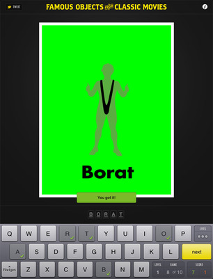 A companion to the immensely popular website of the same name, “Famous Objects from Classic Movies” is an iPad app that keeps you guessing. Users are presented with simple silhouettes of iconic images from different films, which they must guess in order to move on. As their tallied scores increase players are rewarded with consecutive levels of movie buff recognition. An additional 30 titles over the website version bring the iPad app to 140 movies in all—perhaps not quite as much a time such as “Angry Birds” but potentially addictive nonetheless.
