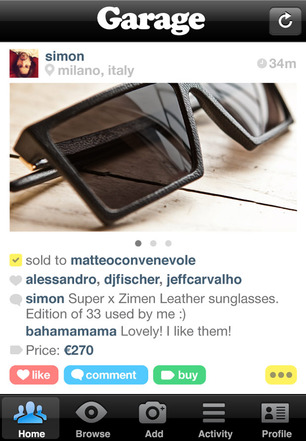 “The idea for Garage developed out of the simple fact that everyone has cupboards, rooms, even garages full of things they don’t want anymore and could sell to a new home,” explains founder Simon Beckerman in a press release. “I didn’t want to create a faceless marketplace used by strangers, but a system that is social and fun. Just as they do with Twitter or Instagram, Garage gives friends a real time way to follow one another and chat about what they have are selling and buying.”