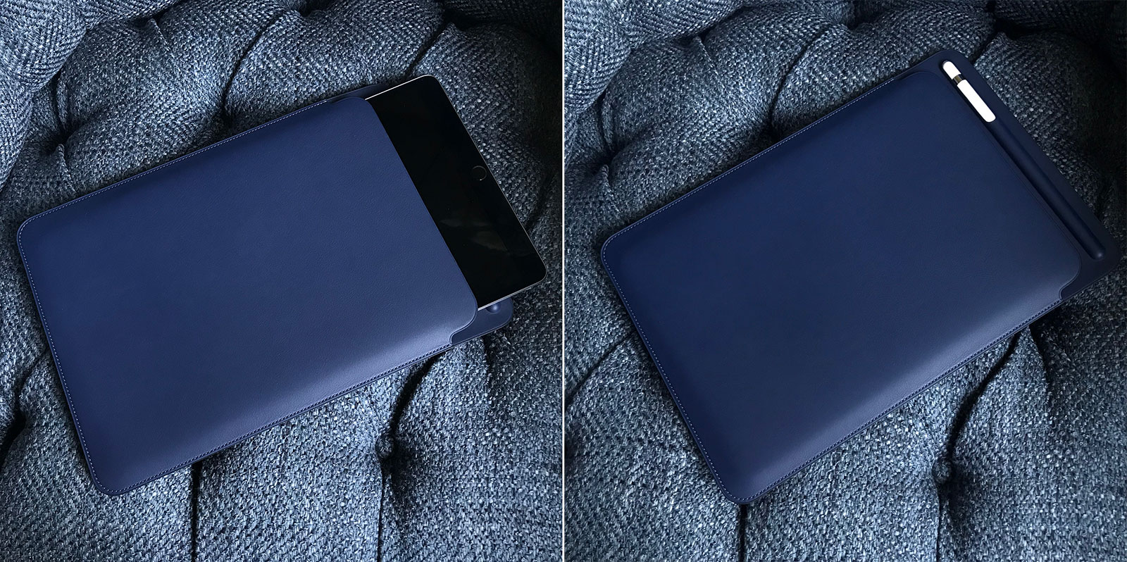 As pleased as I am with this new iPad, I’m smitten with the Leather Sleeve. Simultaneously simple and clever, the microfiber-lined sleeve fits the tablet with or without a Smart Cover and features a Pencil holder molded directly in to the case. It also serves as a mat to rest the iPad on when working.