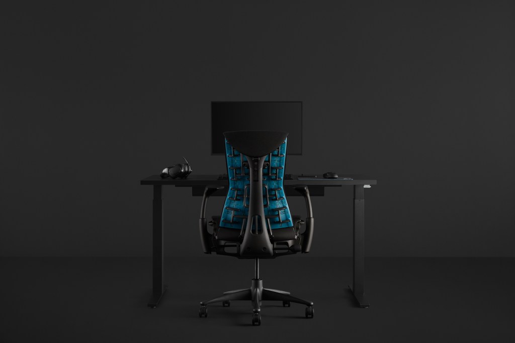 “We decided that we have to start with the highest performing chair within our portfolio and focus heavily on setting and redefining what performance actually means for gaming, and no other chair is better to do that than Embody,” Campbell says. “When Embody was first designed, it was designed in partnership with over 30 PhDs and physicians. We took a lot of our findings from that research and looked at posture and at the way that a gamer sat and how they focus on the screen. We were actually able to modify Embody in a way to better suit gamers’ needs, to continue to push technology, and the performance we get out of Embody, even further and have it be more authentic for the gaming market. Now it aligns your body properly, improves blood-flow, and maximizes oxygenation in your body.”