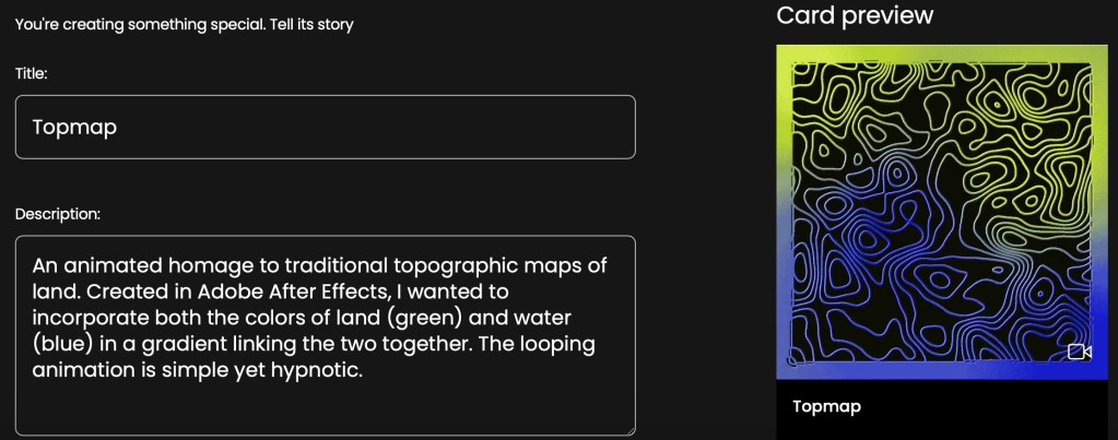 Despite being technologically competent, Miguel was hesitant about her inaugural journey with NFTs but also optimistic about her work existing in a different space and being shared with a new audience. For her first attempt, she decided to mint a vibrant animated digital work of hers called topmap. “It was shockingly much easier than I had anticipated,” she explains. “I thought it was going to be this big, involved thing, which it wasn’t. It was pleasantly surprising—it took 10 minutes. It was so quick and easy.”