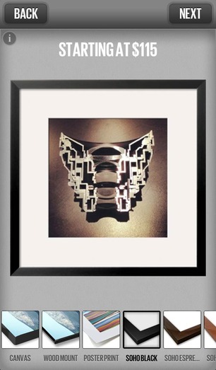 While this is clearly the first step in a new direction for exploiting online photo sharing, Mehra already sees a wealth of potential. He notes that the homogenous look and size of Instagram photos make them prime for creating custom tiled mood boards and other decorative arrangements. In our own trial of the service, we kept things simple and chose a wood mount for an Instagram shot of a cross-sectioned Zeiss lens that we spotted at this year’s PhotoPlus International Expo.