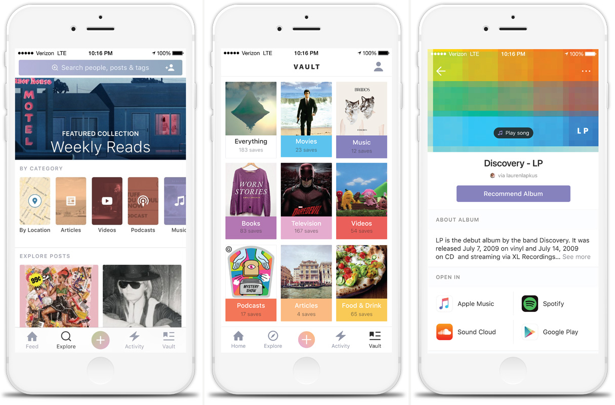 In addition to Smith and Levinson, there’s quite a bit of talent behind the app—including former Tumblr president John Maloney and Vampire Weekend member Rostam Batmanglij (who named the app and consults on the UX and design). The vision, however, is all about clarity. And with switching from an explore page to an activity page and being able to geolocate within the app, it’s very easy to navigate. Even a music track recommendation can be immediately opened in an array of connected apps. This isn’t just for the culturally inclined, it’s easy enough for anyone bored of struggling for good recommendations.