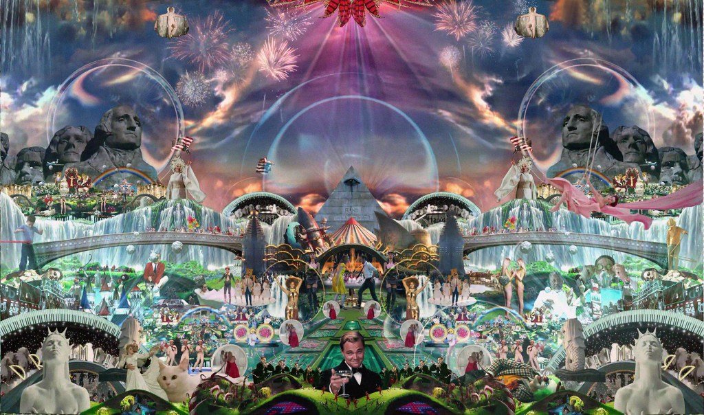 This is Brambilla’s fourth video collage in this style (some may be familiar with his digital collages inside the elevators of NYC’s The Standard Highline). Its visual components, in essence, are characters trapped in time, excised from their original meaning. For all of the captivating storytelling, metaphors (some obvious, others more subtle) abound. Thus, despite a finite runtime around eight minutes, Brambilla notes that nobody will be able to take it all in through one viewing. That’s why it’s looped. It makes a difference to view it four, five or even more times. Even the music—which is supposed to feel like tuning a radio, and incorporates a wide array of genres (including Neapolitan folk song)—requires the utmost attention.