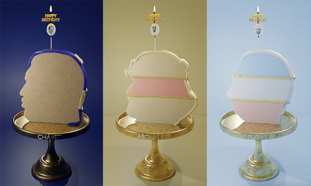 On 28 July, the same day former and controversial president of Venezuela Hugo Chávez was born, art series Festival of Gratitude launched with decadent birthday cakes for Vladimir Putin, Abdullah of Saudi Arabia and Chavez himself. The mystifying NFT project is the inaugural series from new art platform Artwrld and stems from artist and co-founder of the platform Walid Raad whose performances, installations and photography often address politics. Through ostentatious and seemingly absurd digital cakes, Raad’s festival celebrates the birthday of tyrannical and controversial world leaders as a means of depicting the global state of fascism in an incisive manner.
