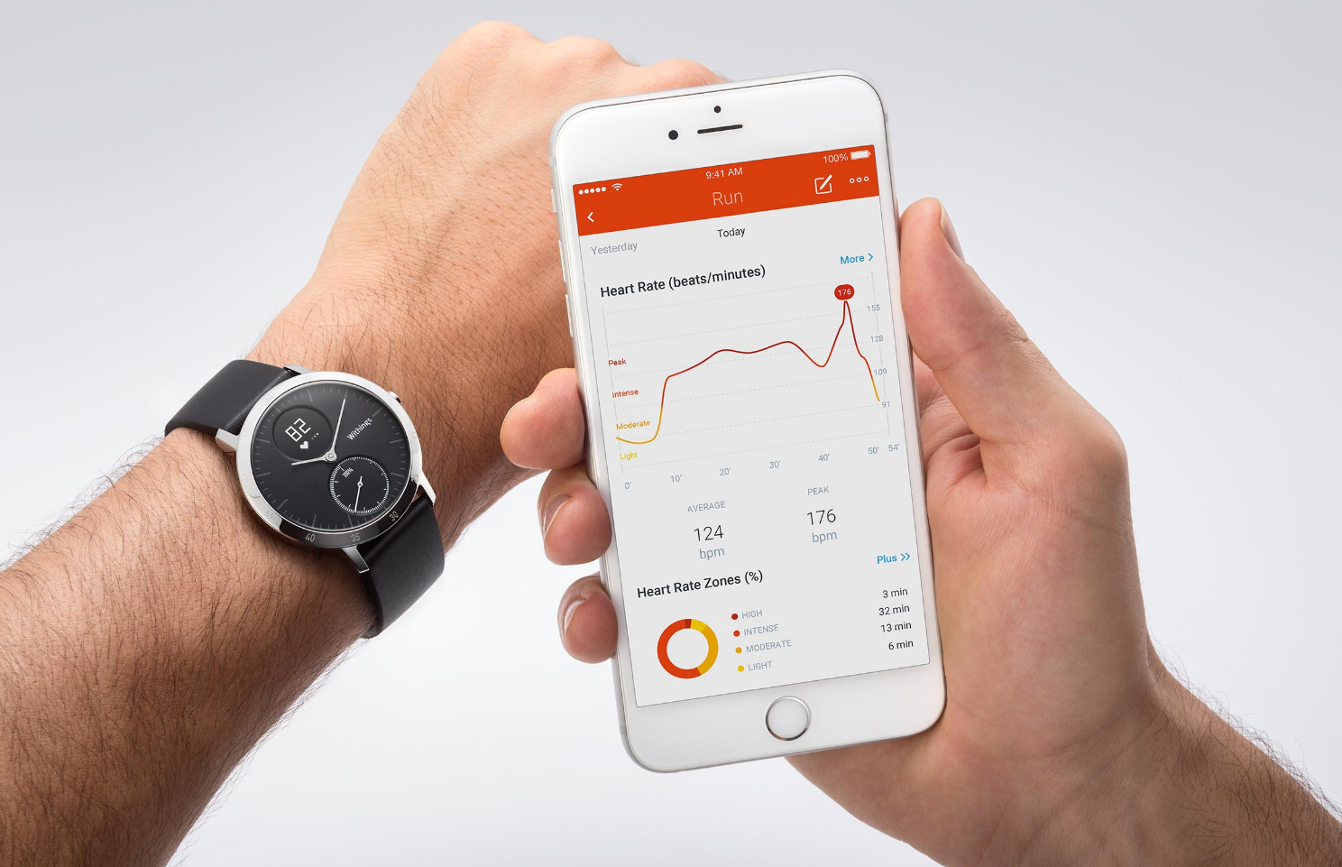 An analog watch offering 24-hour connected quantifiable self data, including heart rate monitoring