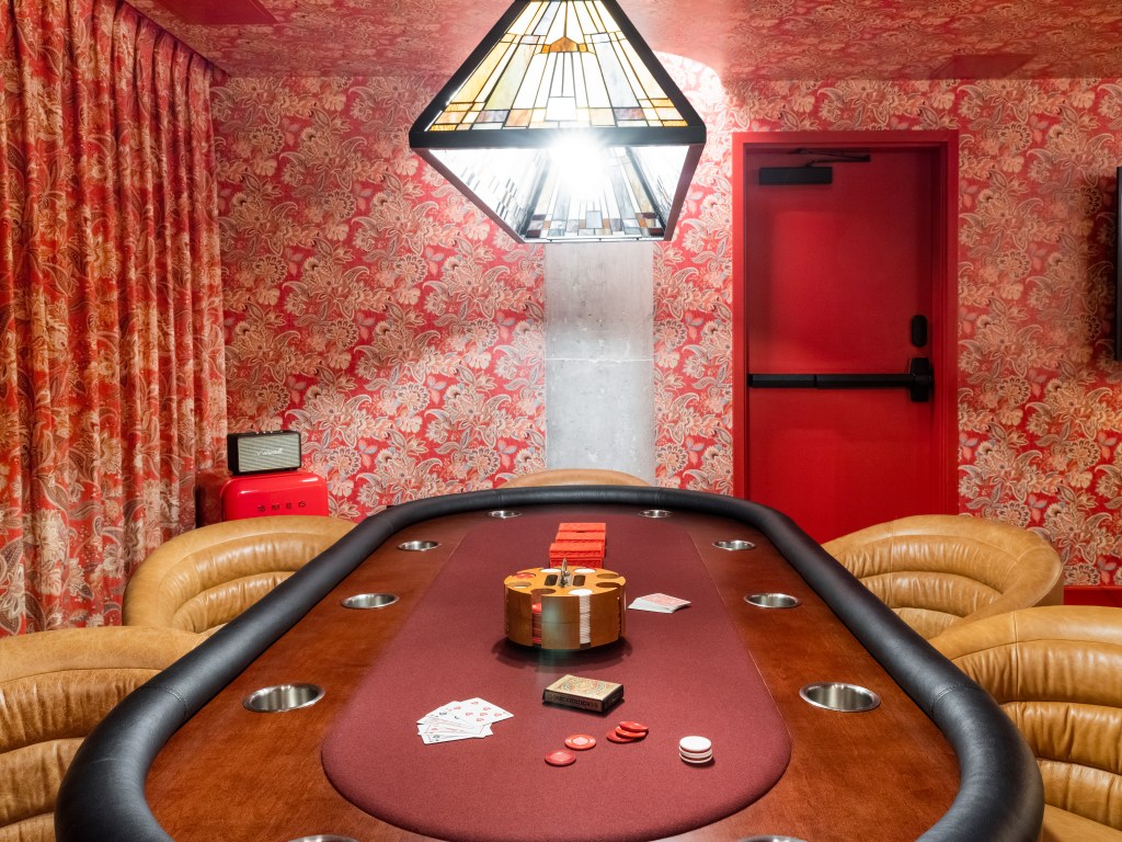 Elsewhere, the hotel offers places to work (beyond the café) as well as play. The 1,200-square-foot conference room allows guests to take meetings, video calls or simply work from an office away from home. Once the workday is done, guests can journey to the Poker Room, an intimate space for eight that is modeled after Elvis Presley’s billiards room at Graceland.