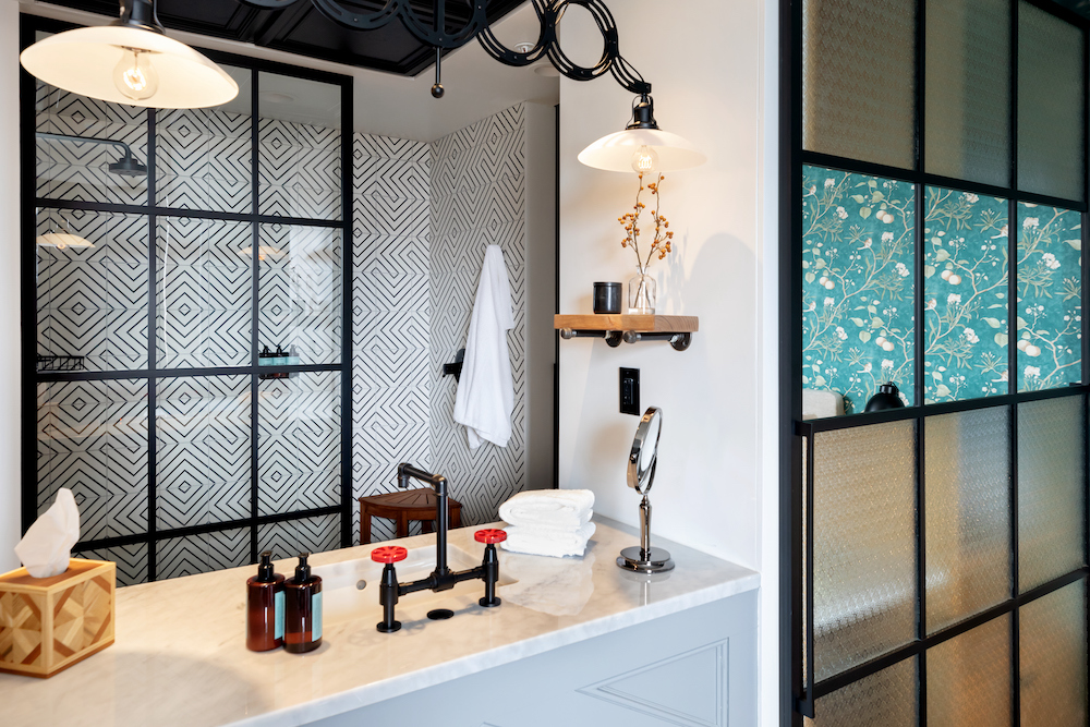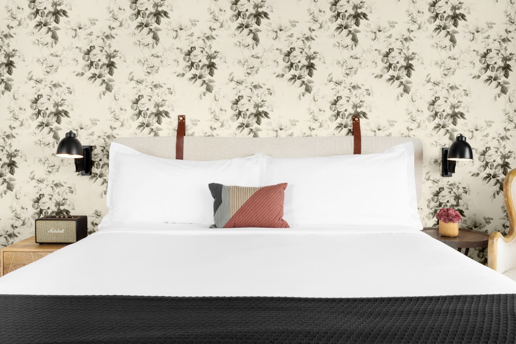 “The Palisociety platform overall takes a slightly irreverent point of view to the design, meaning it’s not formulaic in terms of the way that the hotels are put together,” explains Brosh. The confluence of patterns, from Fair’s wallpaper art to the vintage rugs, and unique finishes like the industrial-style faucets certainly speak to the refreshed aesthetic of ARRIVE.