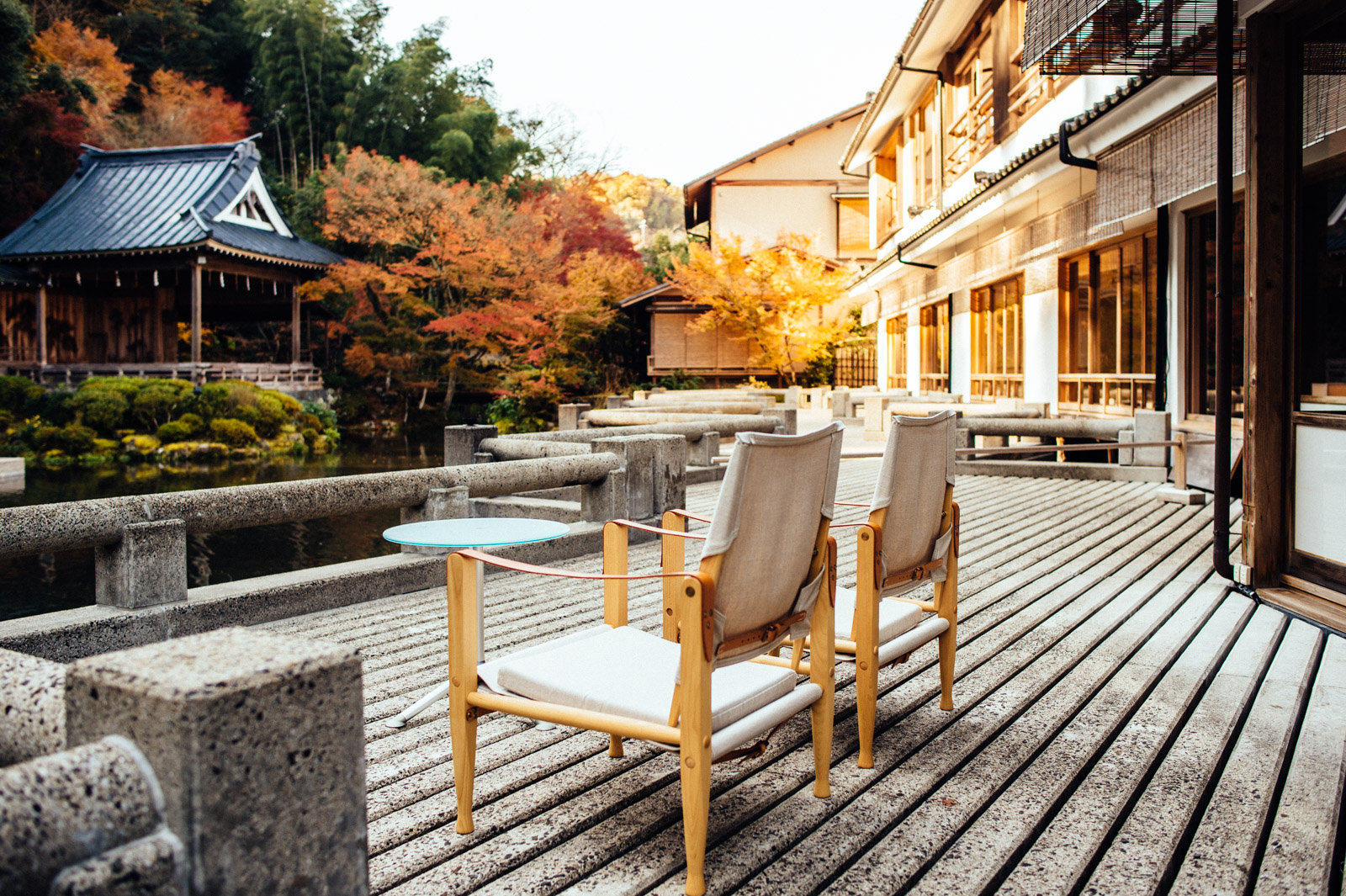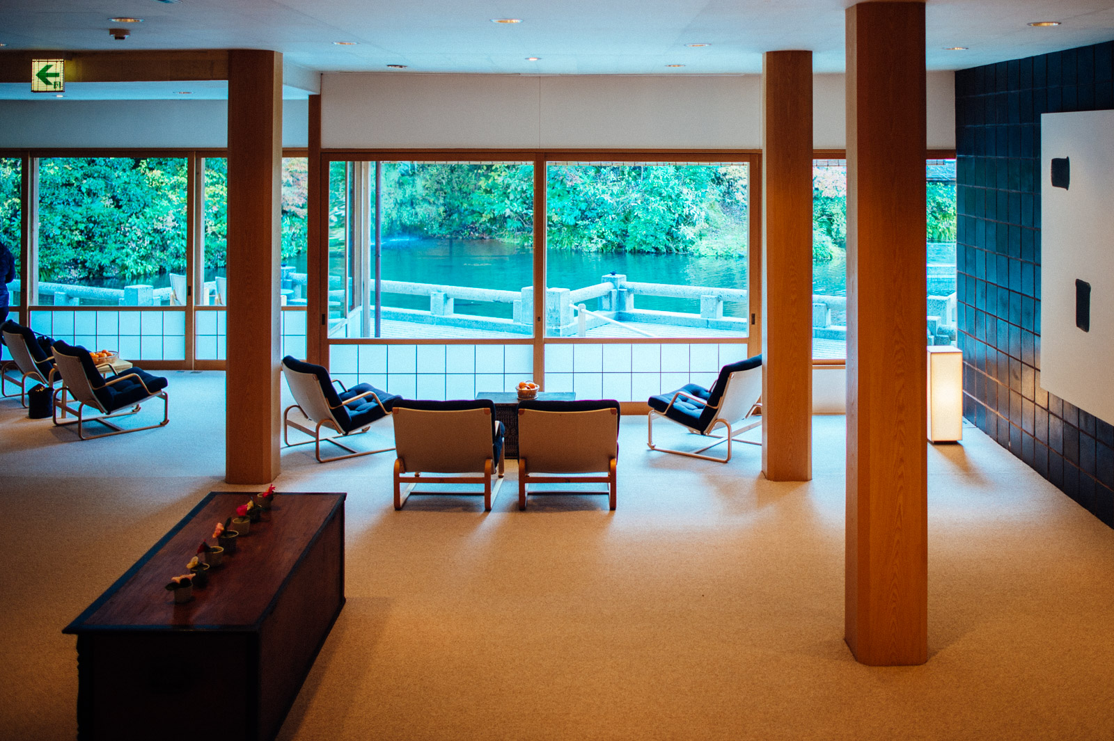 We visited in winter, but it was unseasonably warm so the autumn leaves were still present and full of color which made for an incredible backdrop on the hill behind the pond. In warmer weather the traditional Noh theater, set in to this hillside, is a stage that can be seen from the outdoor deck, salon, lobby and many of the guest rooms.