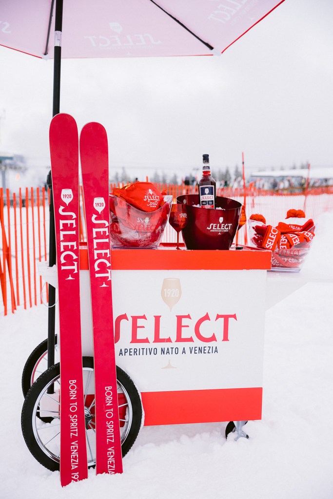 During this year’s ski season, ASPENX tapped esteemed Venetian aperitivo brand Select to take over the installation with spritzes galore. The cocktail proved to be a fitting choice not only because of the summer coastal decor, but also because it makes for a thirst-quenching and light refreshment—perfect for those who just came down the slope. With Select Aperitivo (which was created in 1920 and is comprised of 30 botanicals) the spritz avoids being cloying or syrupy. Its brightness is instead balanced with a hint of bitterness.