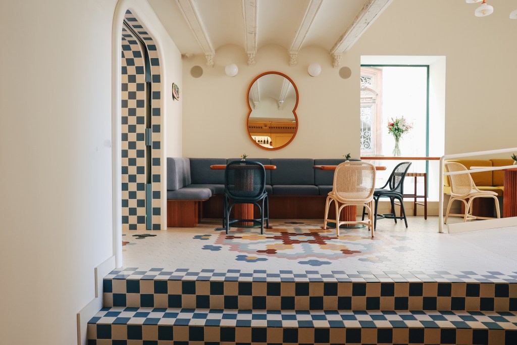 A repurposed, wooden banister with a checkered skirting board and hand-painted murals designed by Hayón lead guests to the 10 rooms and 12 apartments, each different from the other, in which every furnishing has been adapted to the singularity of the space. From pastel hues to dark woods and white marble, Hayón tried to reconnect and take existing elements of the property and repurpose them with a modern touch, hence mixing designer, tradition and craftsmanship. Appropriate for both short and medium-term stays, this ingenious work of art provides comfort and flexibility in the heart of Valencia.