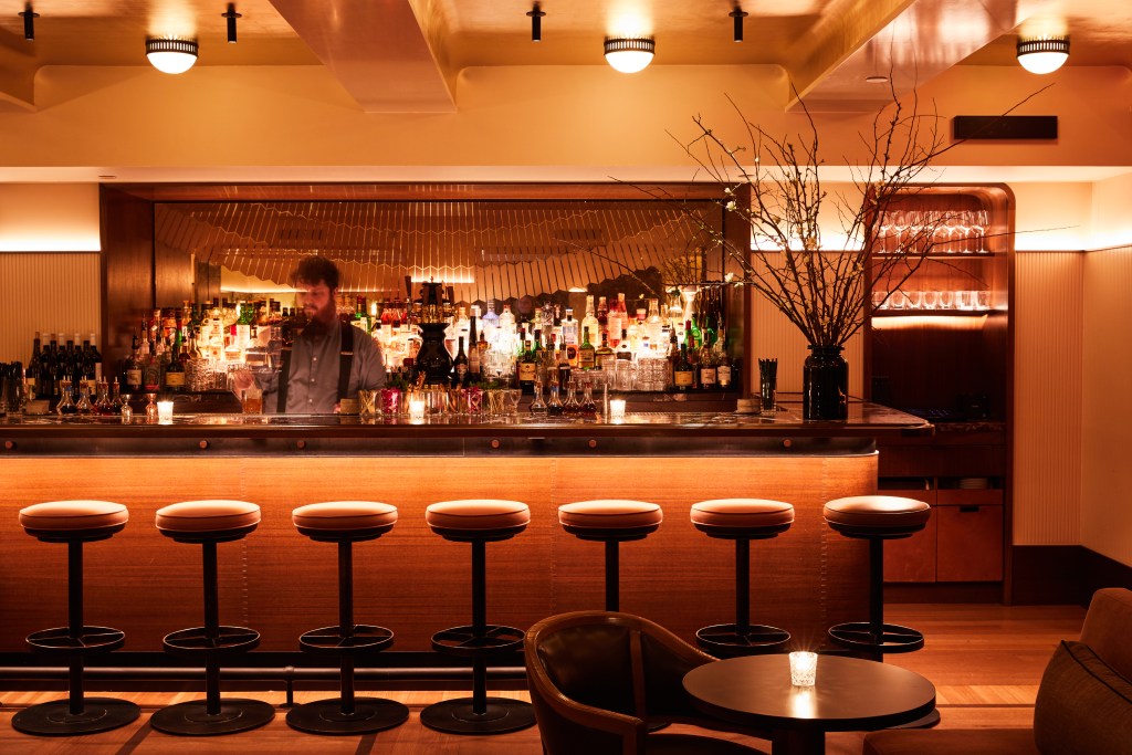 The hotel’s common spaces have already become gathering places for locals, and include the Evening Bar, where bartenders sling cocktails in the wood-paneled, softly lit space. The upstairs mezzanine is a low-lit nook with cozy sofas and chairs, stocked with board games and other curiosities.