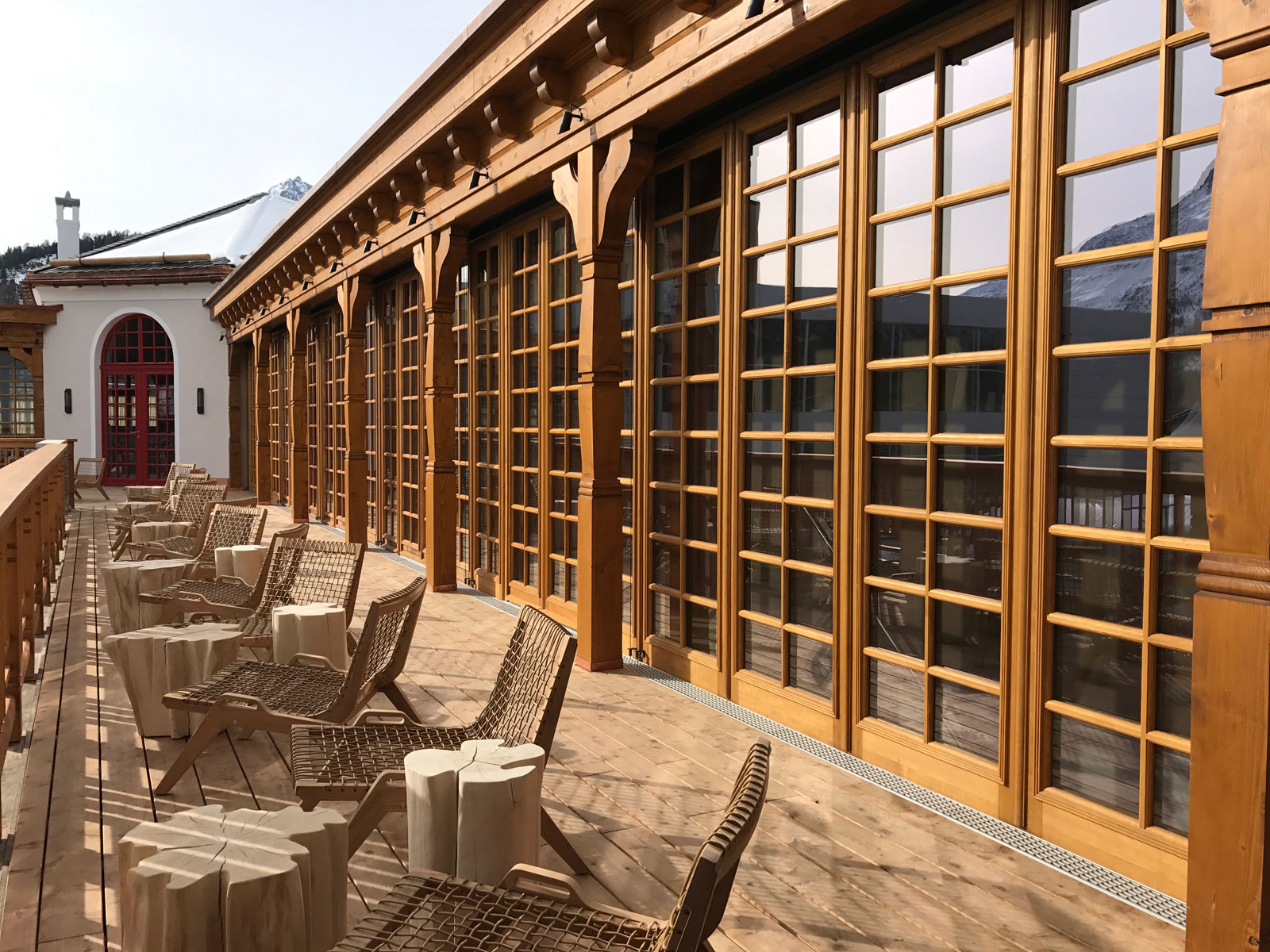 The last weekend of January 2017, star architect Lord Norman Foster welcomed the return of guests to Kulm Country Club: a pavilion with a restaurant and bar on the hotel’s stretch of central property. Far from new, the Kulm Country Club debuted back in 1905. It was the official event base for the Winter Olympics in both 1928 and ’48. During the ’80s, however, it fell into disrepair. Lord Foster, along with Küchel Architects AG, used 110 cubed meters of wood and 3000kg of steel to revive the facility over 10 months. Within, Lord Foster and his wife (among others) hand-selected ephemera from the hotel’s archives (like the 1920s image below) to support the historic wooden window frames, beams and girders. “We utilized stuff that was just lying buried,” he explains to CH. “Some of the drawings and painting and photographs had been in storage—now they service the history.” There’s a reverence to the pavilion, but it’s not a museum. Rather, it’s destined to be a local hot spot.
