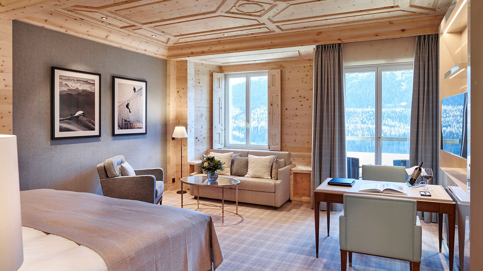 The story of the Kulm Country Club may be the most pressing, but there’s another recent investment worth expounding upon. For the winter 2015 season, the Kulm’s ownership overhauled one wing—carefully, however, as many of the rooms receive return visitors year after year. Known as the Neukulm wing, 33 rooms were reduced and rearranged to 26 (the entire hotel maxes out at 172 rooms and suites). Designed by Pierre-Yves Rochon, each room features regional Swiss stone pinewood—which lends a multi-sensory impact, including an alluring fragrance. There are two colorways, either beige or sky blue, and both deliver contemporary elegance. On our stay, we occupied an older guest room with a balcony. It was spacious and nuanced, but the Rochon rooms truly embody the grand hotel stylings of today. Seven million CHF went into a development aimed at quiet and comfort.
