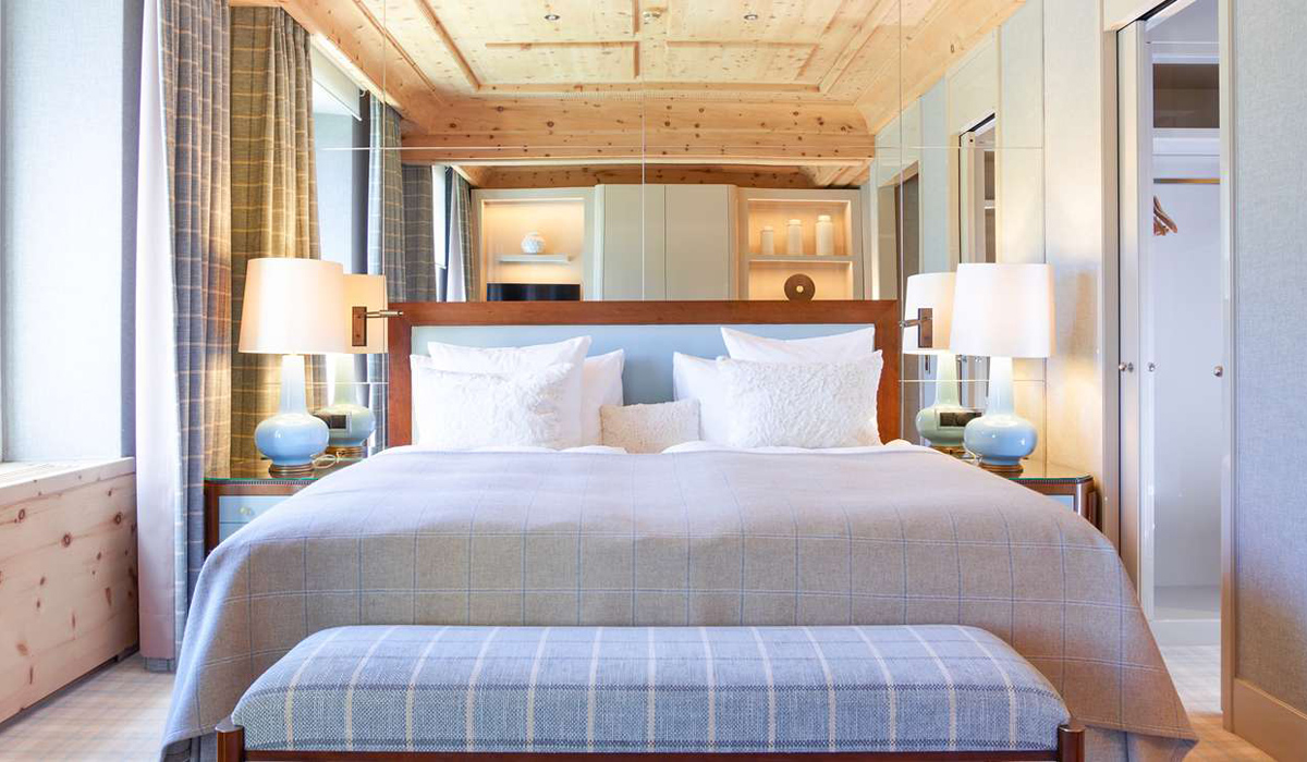Amenities are in no shortly supply at the Kulm, with a 2,000 square-meter spa, five restaurants and three bars—not to mention access to the outside activities. Here, however, we were most taken by the pillow menu. For anyone unfamiliar with a pillow menu, it’s exactly as it sounds. Prior to bed, guests can peruse the eight-item menu with options such as the micro-modal satin Ottimo fiber pillow (easy to plump up) and the Swiss mountain herbs millet pillow (which exudes a light fragrance) and have them delivered. Sizes vary. Firmness/density options are aplenty. Some are warmed, others come with lavish scent profiles and infusions as mentioned. Our personal favorite, the Cherry Pit Warmer, exudes warmth. Known as the Chriesisteisäckli, this pillow arrives heated and soothes—especially satisfying after a day on the slopes.