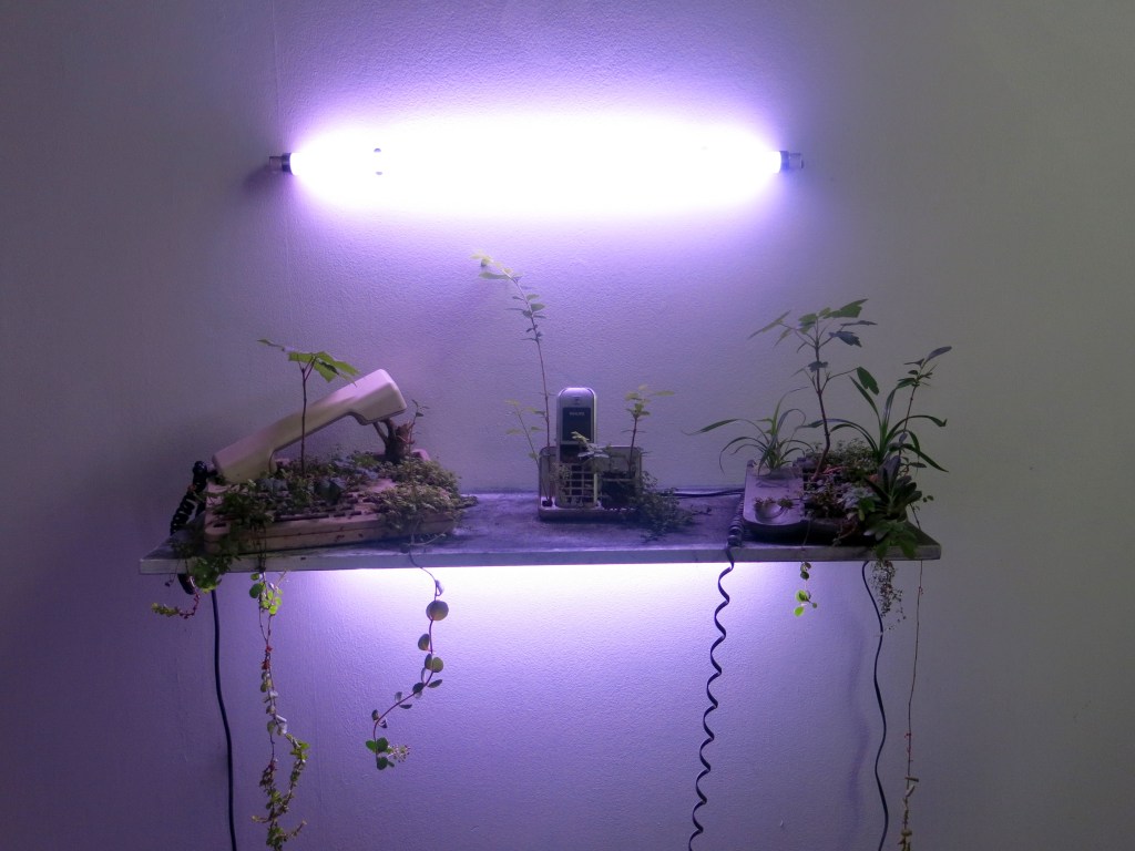 Last Garden is totally apocalyptic and yet surprisingly uplifting. Blazy’s installation, at the Temple du Goût, consists partly of a charcoal-covered floor that the gallery attendants have to spray with water every day for the dust to settle. It creaks satisfyingly under your feet as you wander around and admire his plants which have colonized everyday items. Our favorite was the old Mac and printer that now function as plant pots, a reminder that nature will hopefully survive whatever mankind is currently throwing at it.