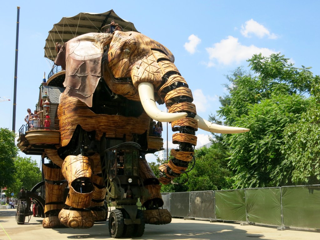 19th century science fiction writer/novelist Jules Verne was born in Nantes, and his memory lives on in the steampunk mechanical machines on the Île de Nantes, Les Machines de L’Île. You can take a meandering trip inside a dreamlike, gigantic mechanical elephant that walks and squirts water, or discover a three-tiered mechanical carousel filled with astonishing and slightly unnerving sea creatures that you ride and control as it spins. It’s unusually interactive art, and the machines are a nice continuation from the island’s past as a shipbuilding location.