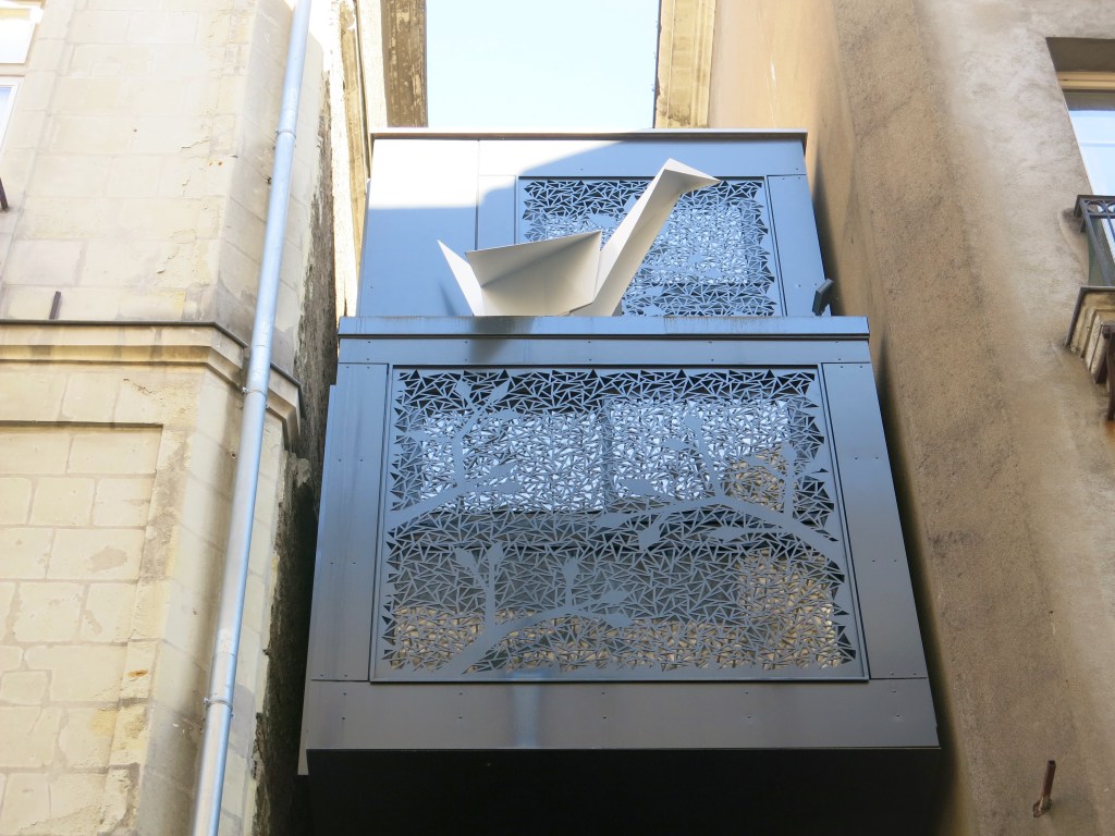 Drouet’s Micr’Home was created for a previous edition of Le Voyage, but proved to be so popular that it’s stayed on. The miniature building is a 280 square foot space spread over three floors, 16 feet off the ground. It’s decorated with metallic origami birds and can be rented for the night, making it an artwork you can actually live in.