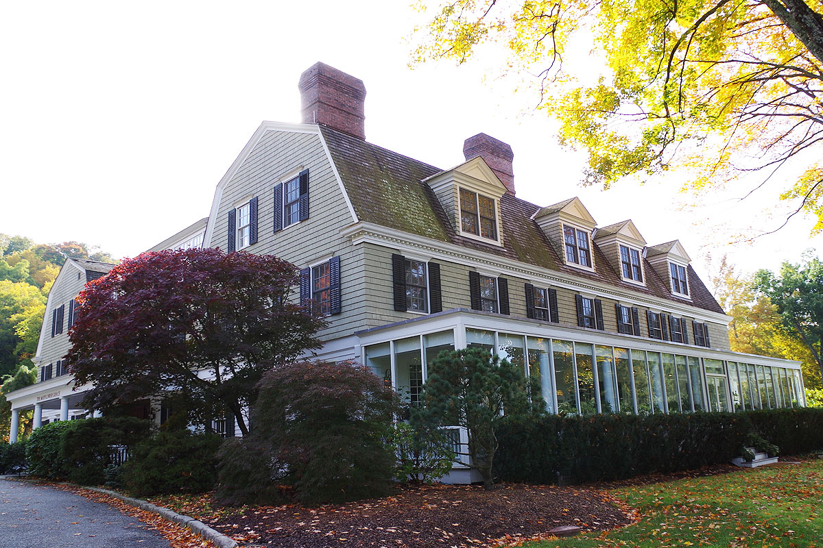 Over the next three weeks, peak fall foliage will strike across lower New England. For most outside of the region, the state of Connecticut marks the easiest entry point. Sat in the rolling hills of Litchfield County, the Grace Mayflower Inn and Spa epitomizes an autumn leaf peeper’s dreamscape. The 58-acre compound is set among rolling woodlands, well-balanced with evergreens and the seasonally-shifting deciduous trees. At its center lies a 30-room inn which can trace its origins back to the 1800s—though it received substantial renovations in the ’90s. There’s a reason the Grace Mayflower has maintained its reputation over the years: it’s an inspirational place built to incorporate the surrounding nature.
