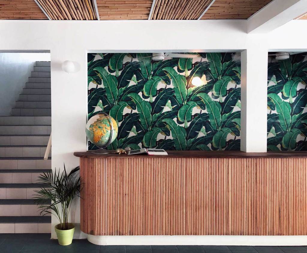 Guests enter the open-air reception area and are immediately met with this laid-back vibe: while staff members here are super-friendly and always present, they’re not concerned about people coming and going from the beach. The banana leaf wallpaper and retro travel print advertisements give way to a large palm-covered garden and a path that passes by the guest rooms, most of which have their own balcony seating. The rooms are simple but stylish, and provide all that’s needed for a beachside stay: comfy four-poster beds, small walk-in robes, and a minibar stocked with all the regulars—plus after-sun lotion.