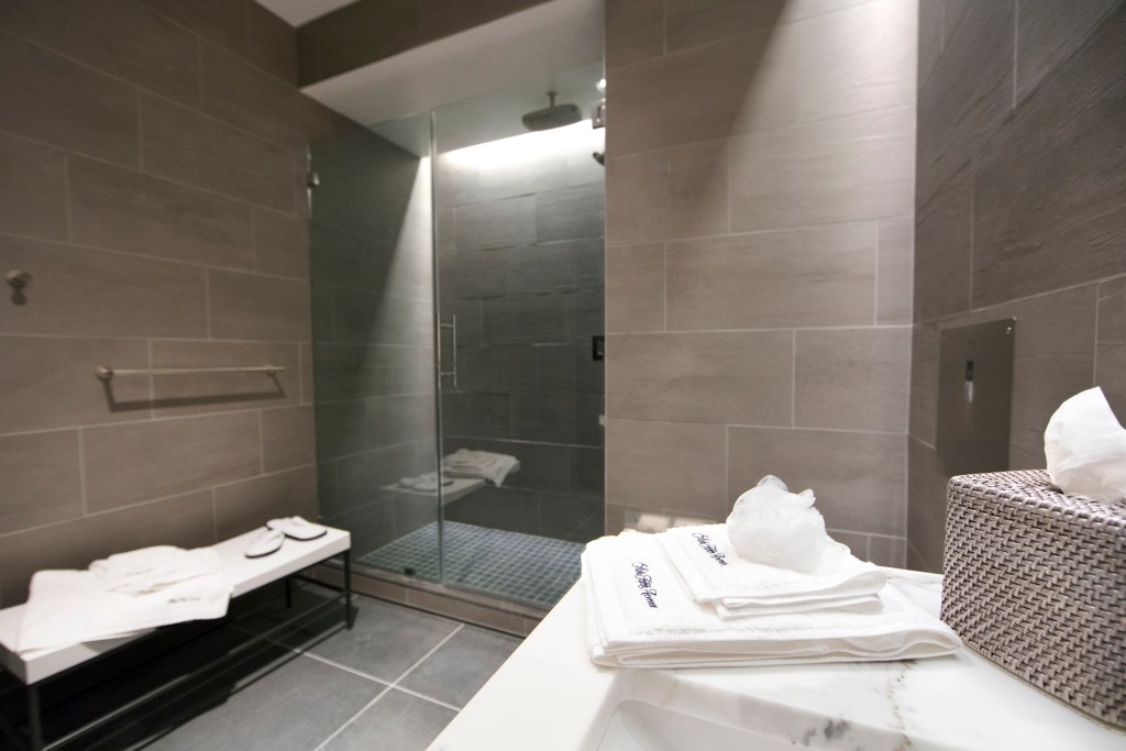 Then there are the all-important shower suites (there are 10 of these too, two of which are accessible for people with disabilities) each with a rainfall shower and all the products one might need, from Soho House’s Cowshed Spa Brand. The private showers and regular bathrooms in the lounge are all gender-neutral.