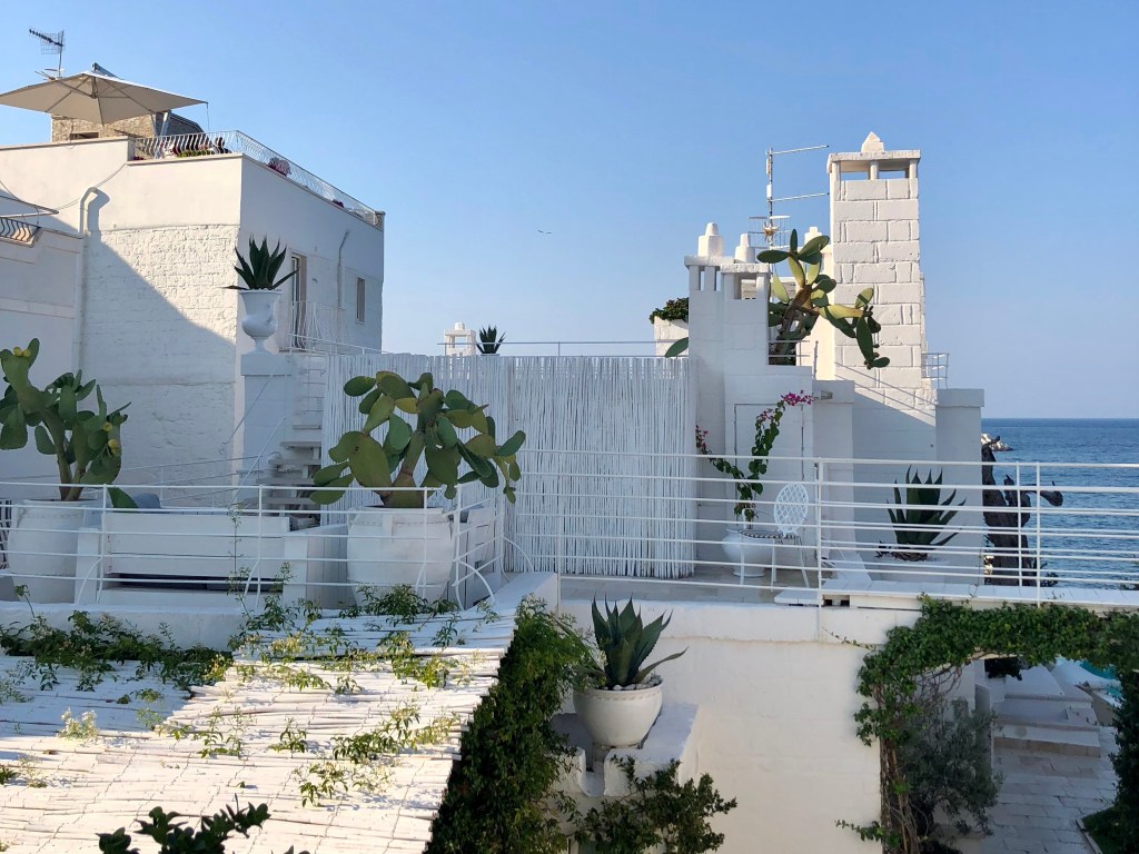 One of the best ways to soak up Puglia’s interpretation of la dolce vita is by sipping a negroni on the rooftop of Don Ferrante, Monopoli’s premier hotel right in the center of its old town. The all-white hotel, including its rooftop décor and furnishings, contrasts brilliantly with panoramic views of the soothing blue of the Mediterranean, reminiscent of Greece’s Cycladic islands. A former fortress, Don Ferrante’s strategic location centuries ago still applies, being the most glamorous, desirable place to stay in Monopoli.