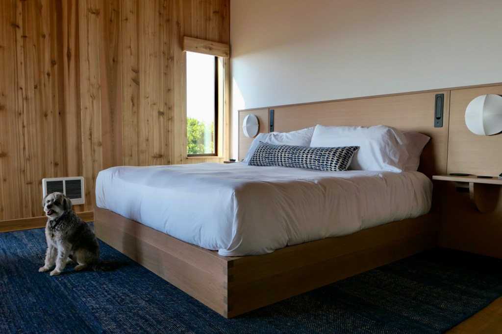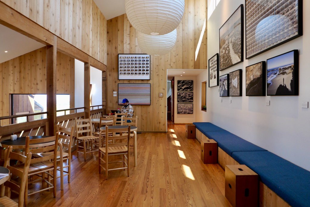 The coffee bar at The Sea Ranch Lodge has quickly become a community gathering space. Locals and visitors relax on the front deck with mugs of coffee, many with their dogs. The Lodge welcomes canine guests in their first level guestrooms, too. In addition to the aforementioned lodging, The Sea Ranch Lodge also includes seven architecturally significant homes available for vacation rentals. This includes The Tarp House designed by Obie Bowman, the Hines House designed by MLTW (one of only two homes in The Sea Ranch that are in the National Register of Historic Places) and White Tail designed by Charles Moore.