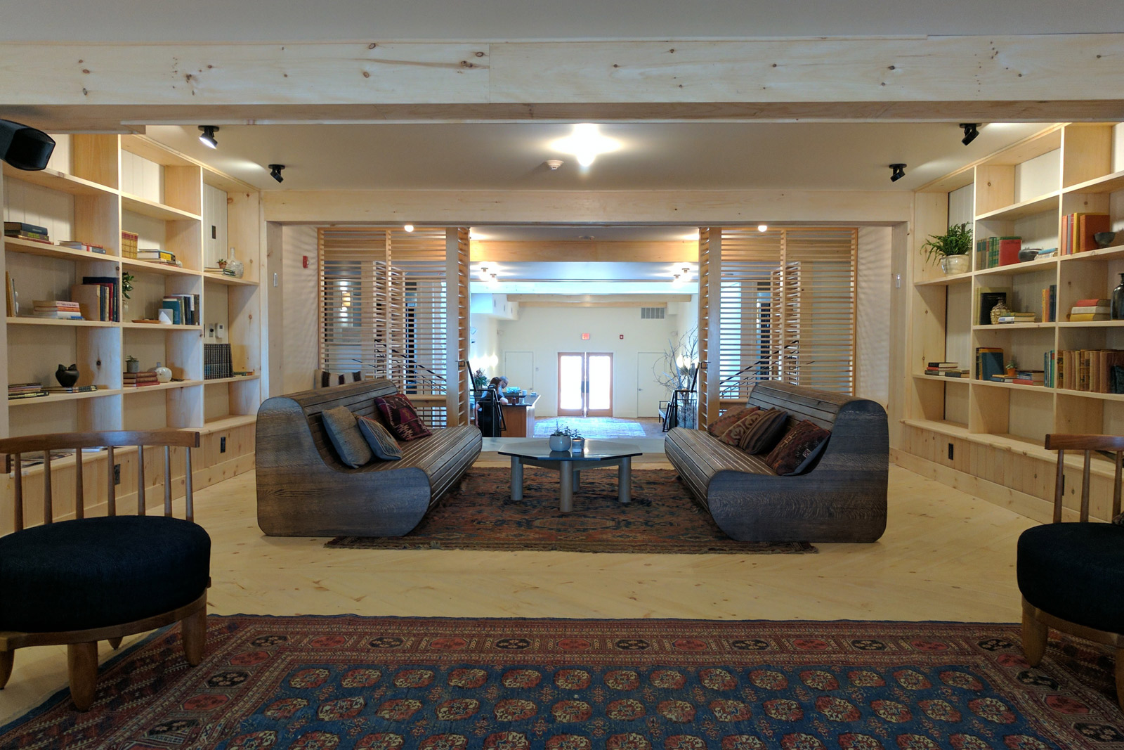 Before committing to the Scribner’s property, Chodock and his team saw at least a dozen properties over the course of six or seven months. Scribner’s drew him in for a few reasons. “First, we were looking for something that basically fit this size—38 rooms is large enough for a group, but it’s not too big so that we are chasing people to fill rooms all the time.” Beyond matching their financial model, “It made sense for the activities and location that we wanted. We are less than a mile from Hunter mountain. It allows this to be a full-year experience facility.” Finally, there were the intangibles. “The style and architecture of it was amazing. The history of it we loved. The bones, as well. It was a well-built building.” When walking through it today, one does feel as if it fits the Catskills perfectly, from its mountain decor inflections to the way it nestles into the landscape.